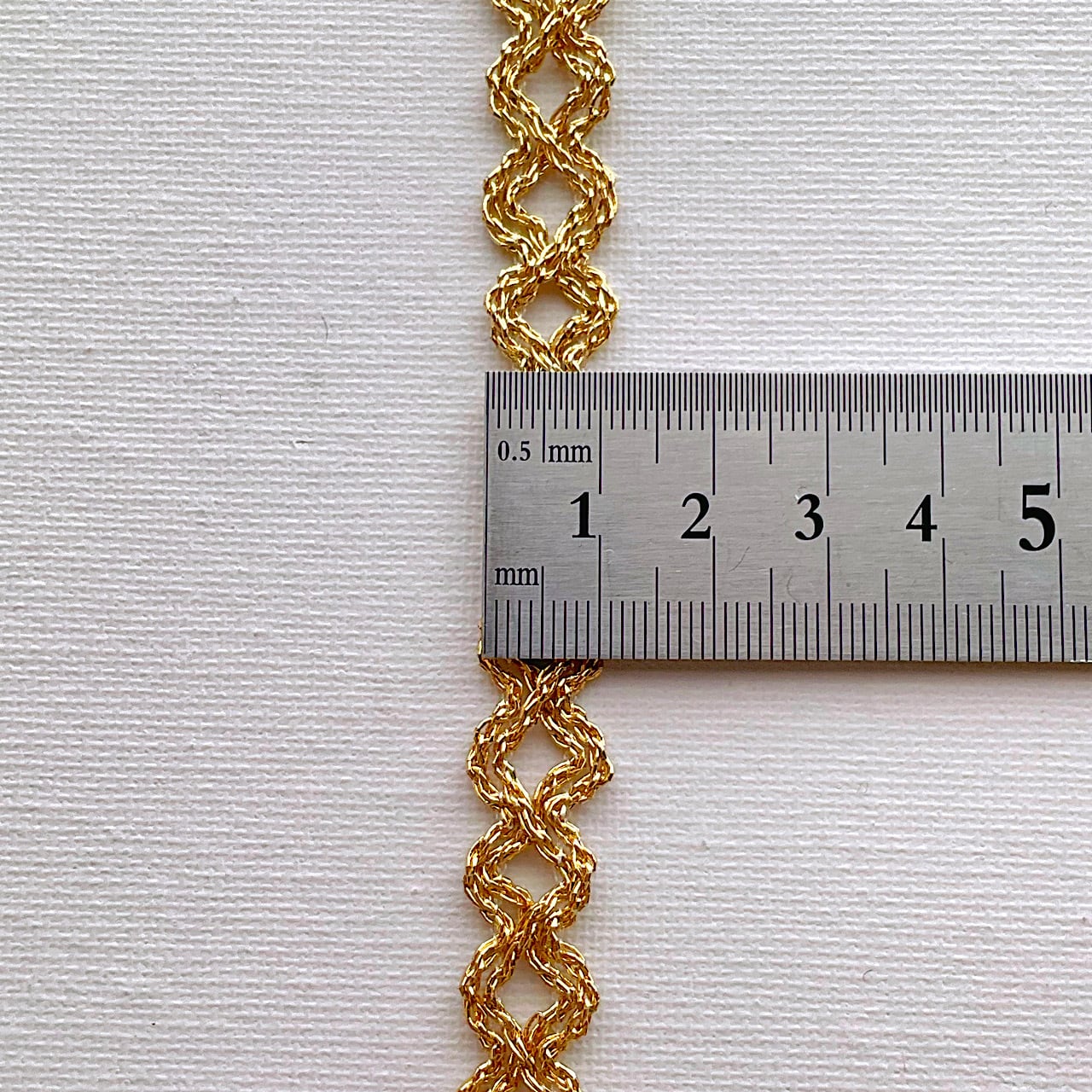 このシリーズの良いところは、太さも厚みも備えながら、金属ではないので縫えることです。ゴージャスなお衣装やアクセサリーのアクセントにいかがでしょうか?